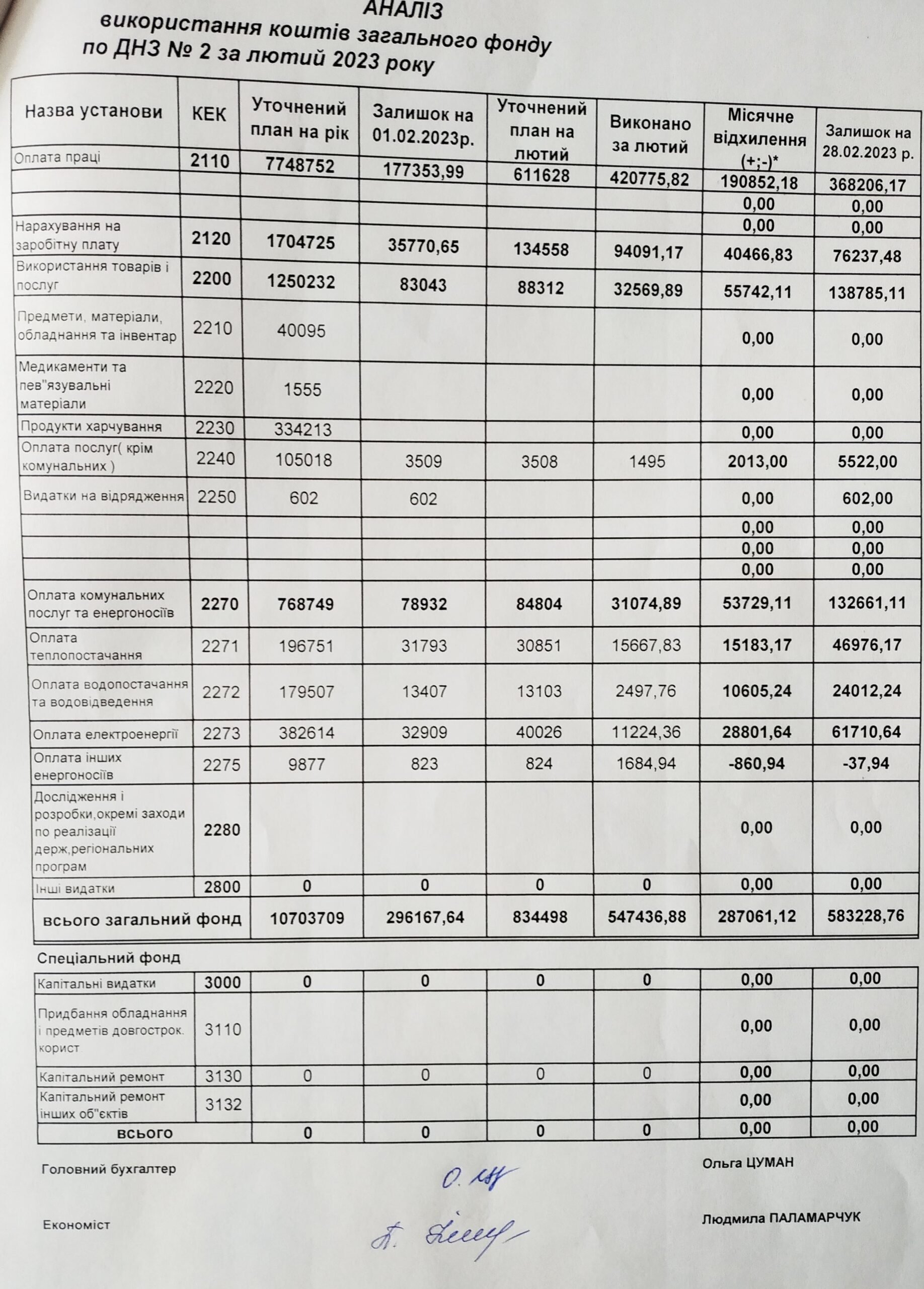 Аналіз використаних коштів за січень-лютий 2023