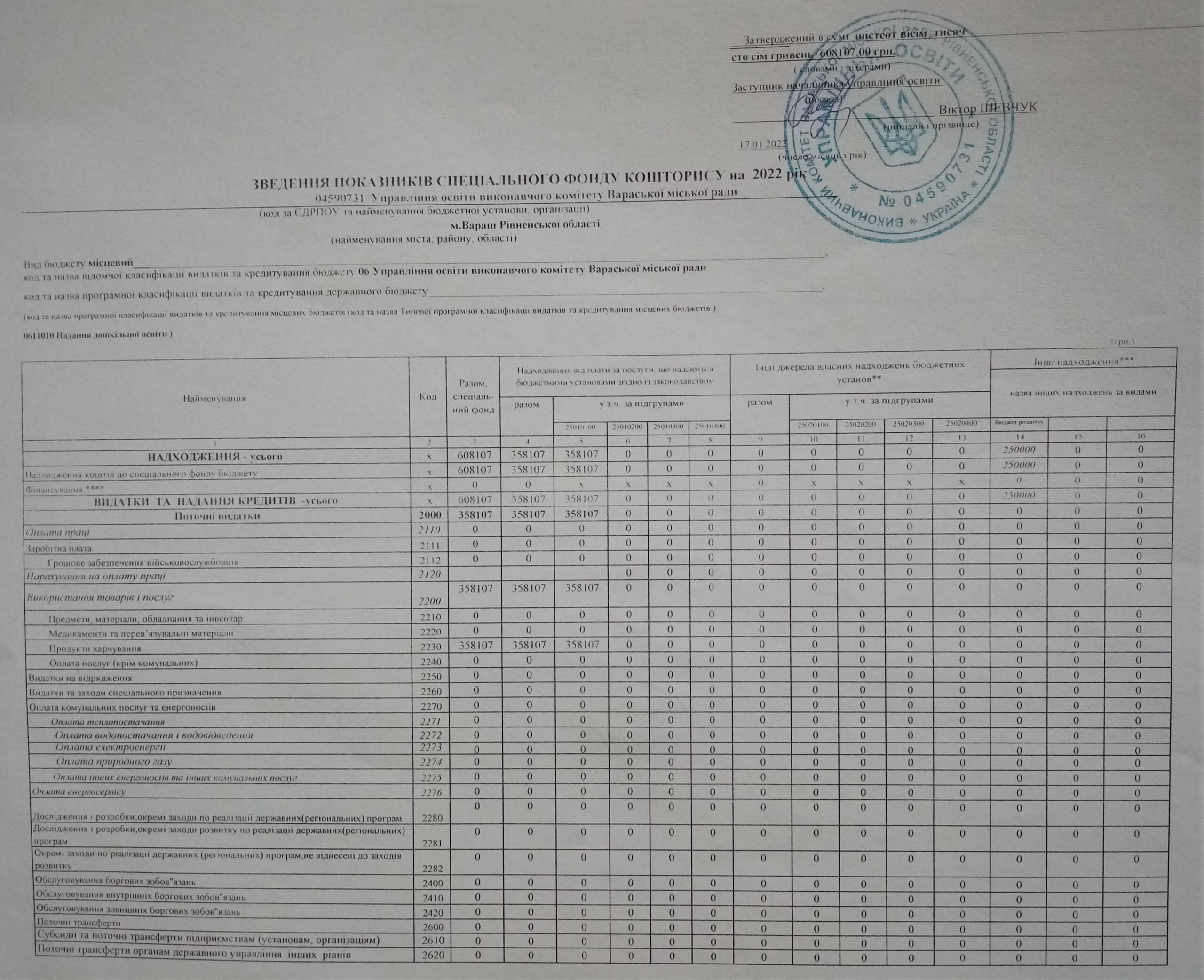Фінансова звітність smart smart ПЛАН спеціального фонду бюджету 2022 ЗВЕДЕННЯ ПОКАЗНИКІВ на 2022 рік smart smart